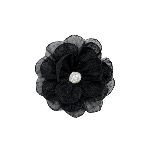 120Mm Broche Fleur Cristal Élégante Pour Femme Épinglette Organza Plumetis Pour Robe Costume Mariage Cérémonie Soirée Cocktail Accessoire Mode Tendance Style Bohème Chic Bijoux Romantique (Noir)