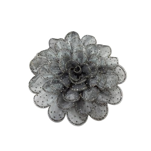150mm Éclair Broche Fleur Camélia Élégante Pour Femme Et Homme Accessoire De Mode En Tissu Texturé Idéal Pour Mariage Fête Costume Robe Épinglette Chic Dahlia Rose Chic Cadeau Festif (Gris foncé)
