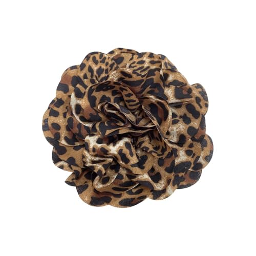 140mm Broche Fleur Léopard En Tissu Grand Pin's Manchette Accessoire Élégant Pour Cheveux Robe De Mariage Soirée Ou Banquet Classique Bijou Main Pour Femme Cadeau Chic Femme Romantique (Brun)