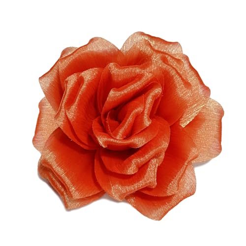 150mm Éclair Broche Fleur Camélia Élégante Pour Femme Et Homme Accessoire De Mode En Tissu Texturé Idéal Pour Mariage Fête Costume Robe Épinglette Chic Dahlia Rose Chic Cadeau Festif (Orange foncé)