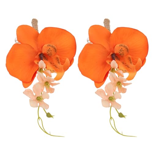 ABOOFAN Lot de 2 Boutonnières Artificielles Orange pour Marié et Témoin, Décoration Costume Mariage, Accessoires de Robe de Mariée pour Cérémonie et Fête