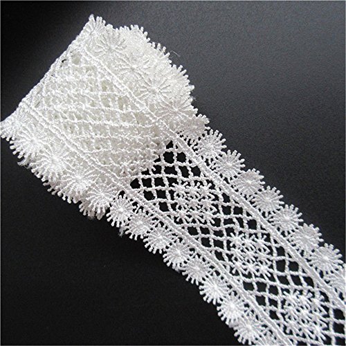 Yulakes Applique en Dentelle Avec Col Tressé pour Robe de Bricolage - Fleurs Blanches, Broderie Guipure de Mariage - Taille Unique L573 (Blanc)