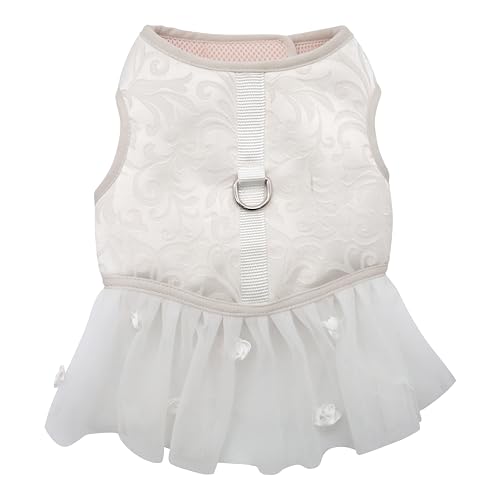 Croci Ceremony Bride Harnais pour Chien Femelle pour Mariage, Robe pour Chien avec Jupe en Tulle Fantaisie damassée, réglable, S/27-31 cm