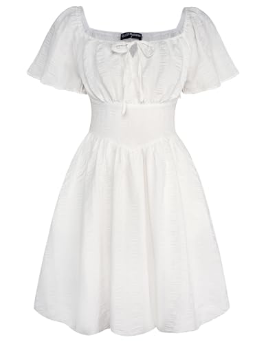 SCARLET DARKNESS Robe Renaissance pour femme - Col carré - Mini robe corset d'été médiévale, blanc, XL