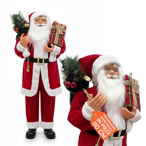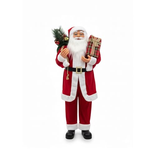 Wintem - Père Noël Debout 110 cm avec Robe Rouge Traditionnelle et détails réalistes, prêt à l'emploi pour la Maison et la création de Magie Festive