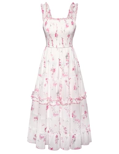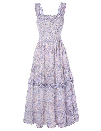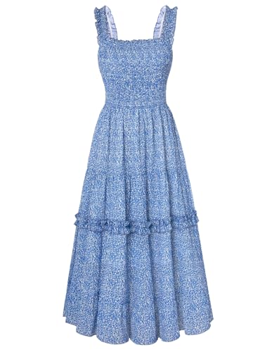 Scarlet Darkness Robe longue d'été décontractée florale pour femme - Robe spaghetti victorienne - Robe smockée de plage pour femme', Motif floral bleu clair., XXL