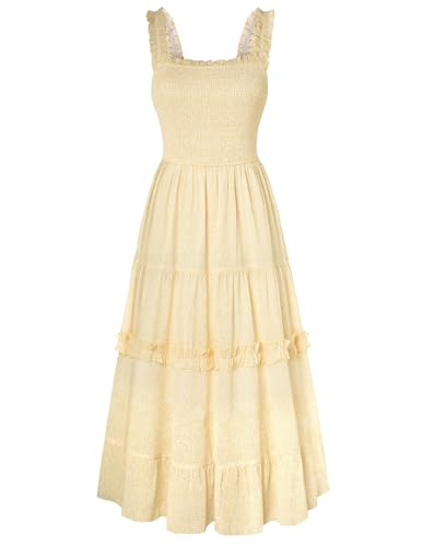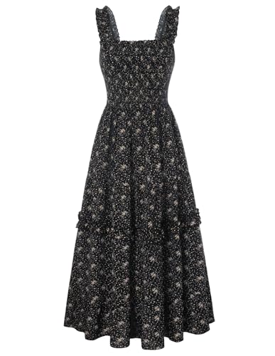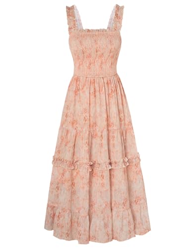 SCARLET DARKNESS Robe florale spaghetti victorienne à smocks longue d'été décontractée pour femme, Abricot noir floral, S