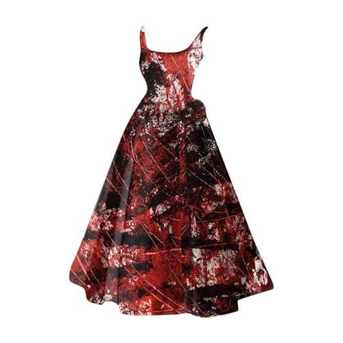 Generisch Robe d'Halloween pour femme - Costume d'Halloween effrayant - Robe de mariée zombie sanglante - Élégante sans manches avec lanières - Coupe cintrée pour tenue de fête ou carnaval - Rouge
