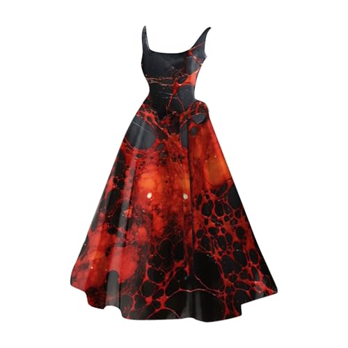Costume d'Halloween pour femme - Robe effrayante - Costume d'Halloween pour femme - Robe avec imprimé - Zombie - Robe de fête médiévale - Col rond - Sexy - Ligne A - Robe de fête - Rouge