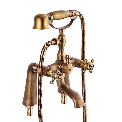 GLYYR Rétro Robinet de Baignoire avec Douchette Monté sur Le Pont Laiton Robinet de Douche Salle de Bains avec Double Poignée Froide Et Chaude Spin Bec Baignoire Mitigeur