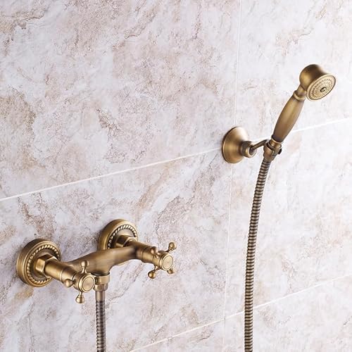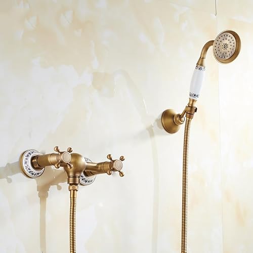 XYNSNDB Robinet de Baignoire avec Douche à Main, Robinet de Baignoire et de Douche Mural de Style rétro, poignées Doubles croisées, Robinet de Baignoire en Laiton, mitigeur de Salle de Bains,