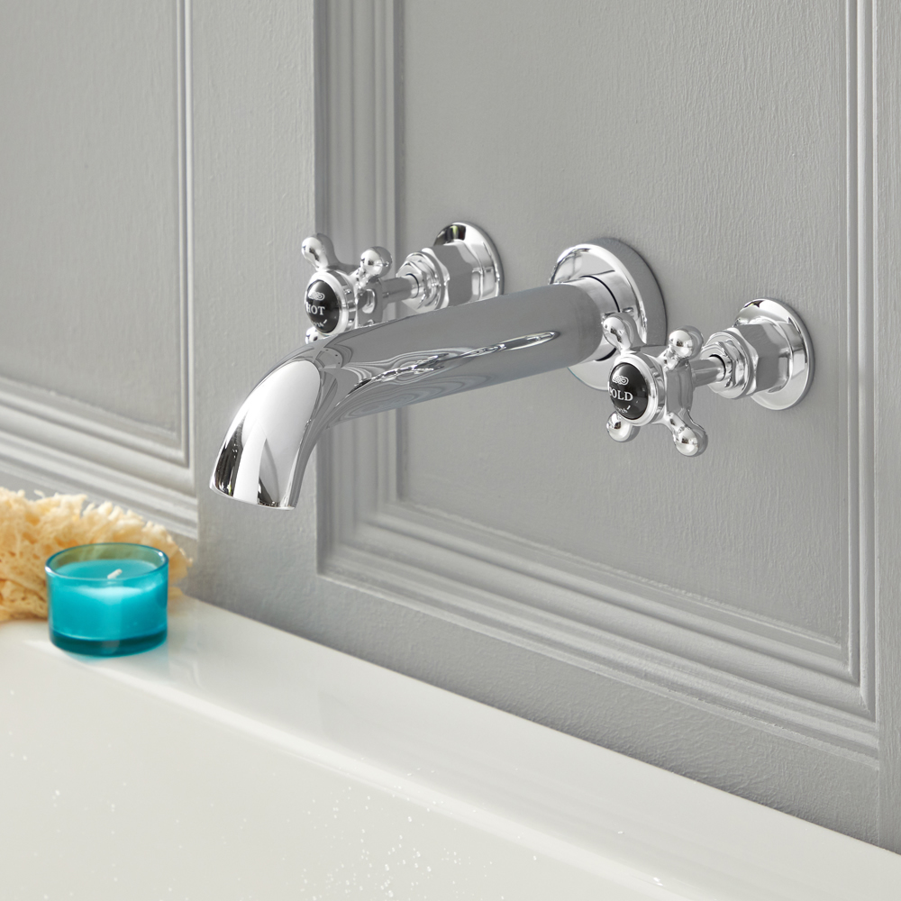 Robinet baignoire mural rétro à croisillon 3 trous - choix de finitions - Elizabeth