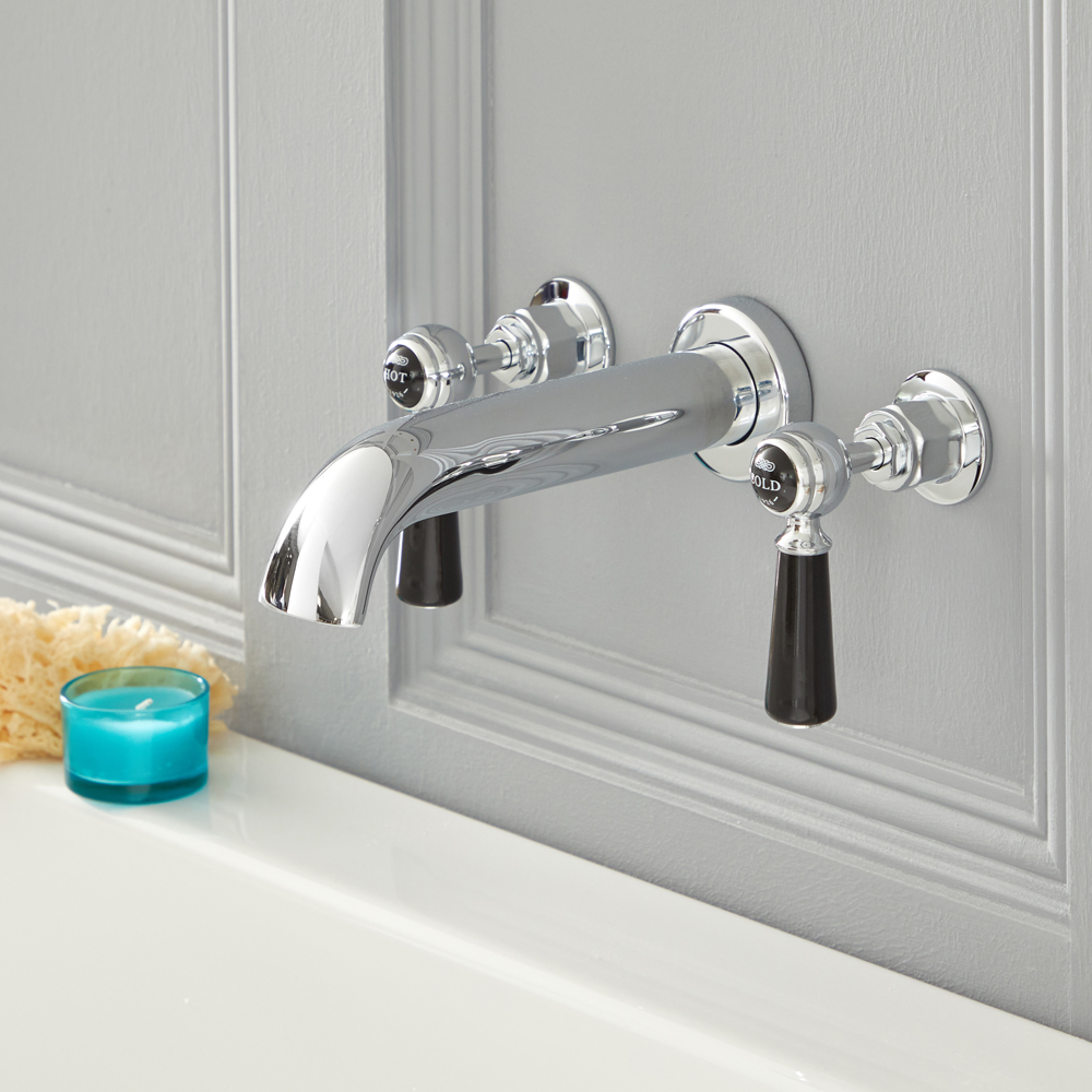Robinet baignoire mural rétro à 3 trous – Commandes leviers - Chromé et noir – Elizabeth