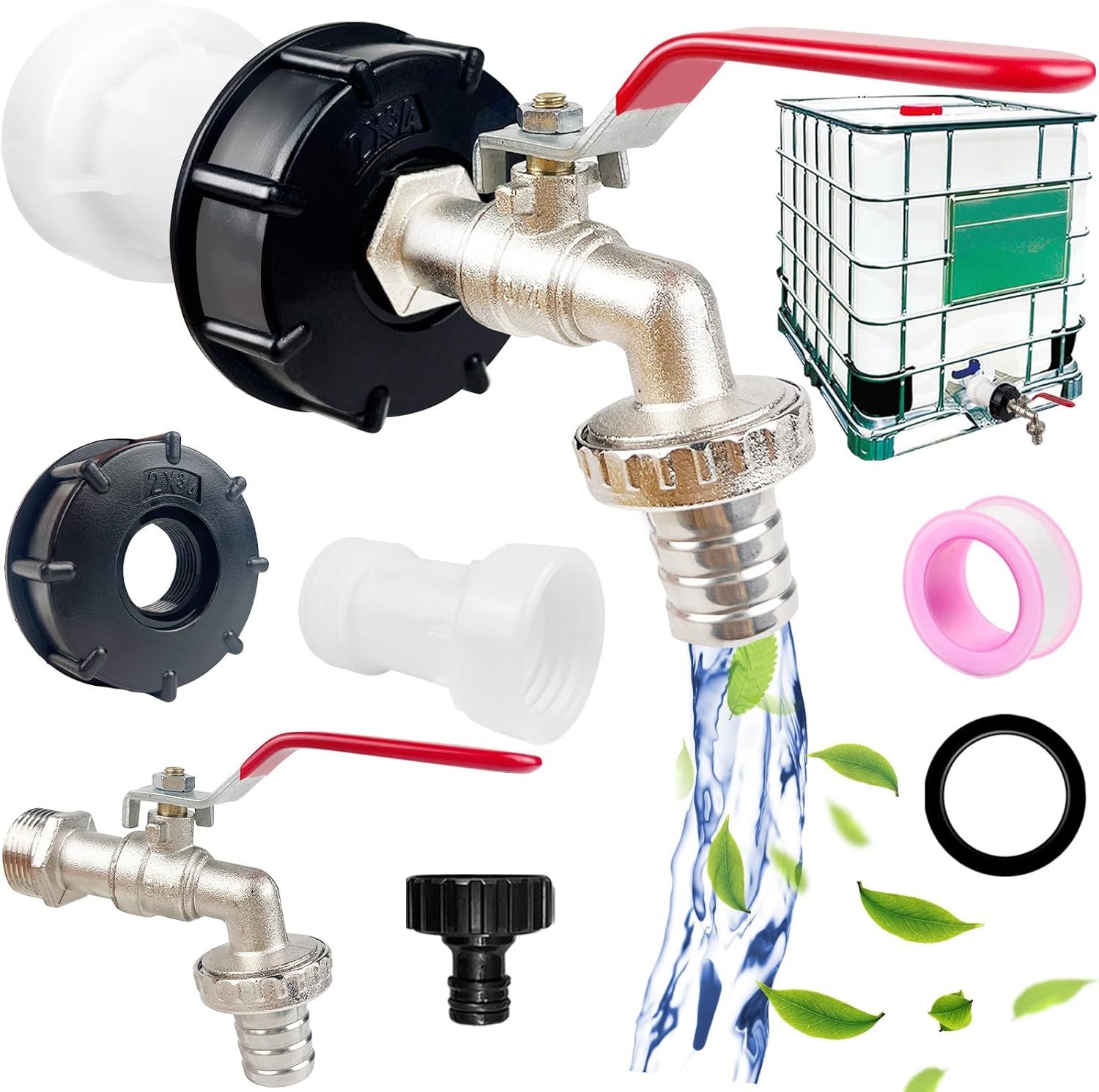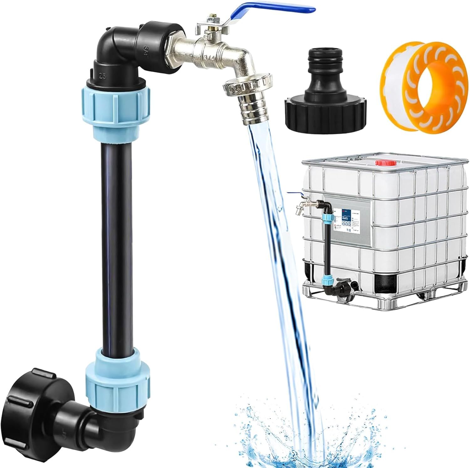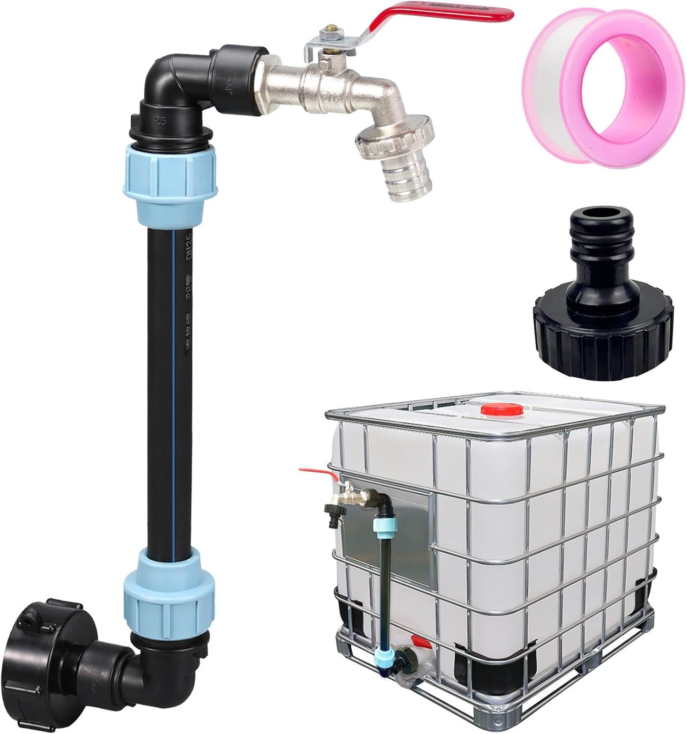 Robinet Cuve 1000L,Raccord Cuve 1000 litres,Robinet IBC Col de Cygne de Cuve,Adaptateur de Réservoir IBC Adaptateur Cuve S60x6,Filetage Grossier 3/4"" Raccord Cuve IBC Robinet Kit