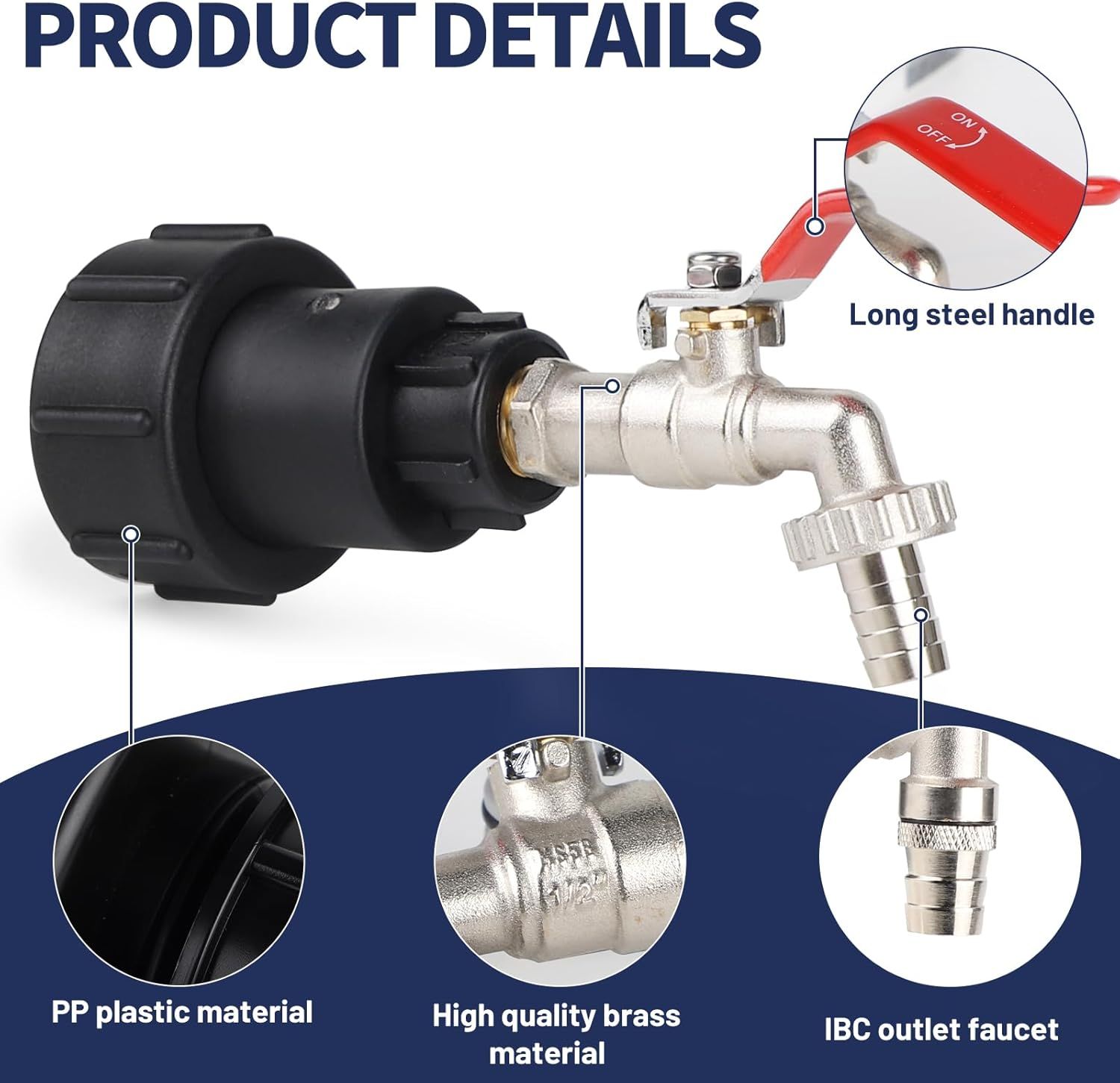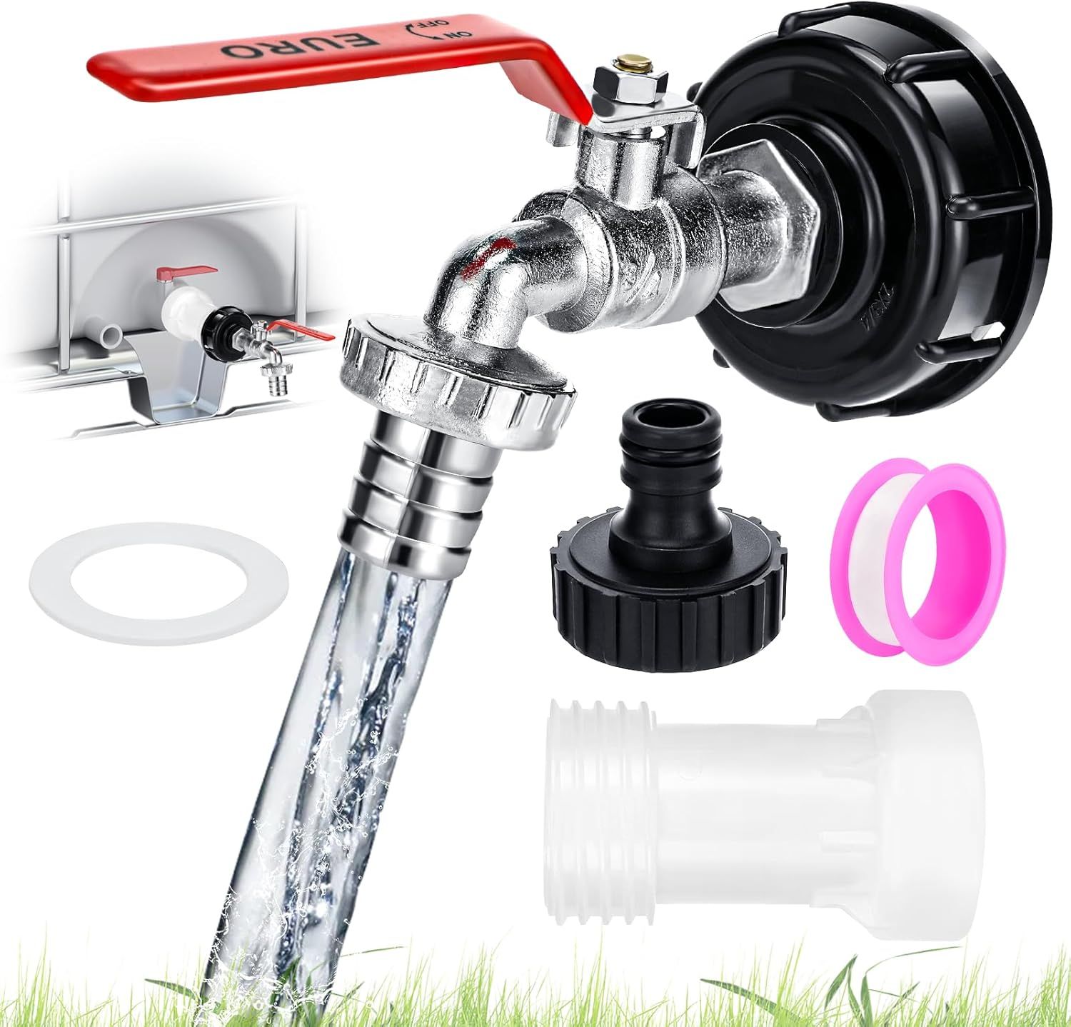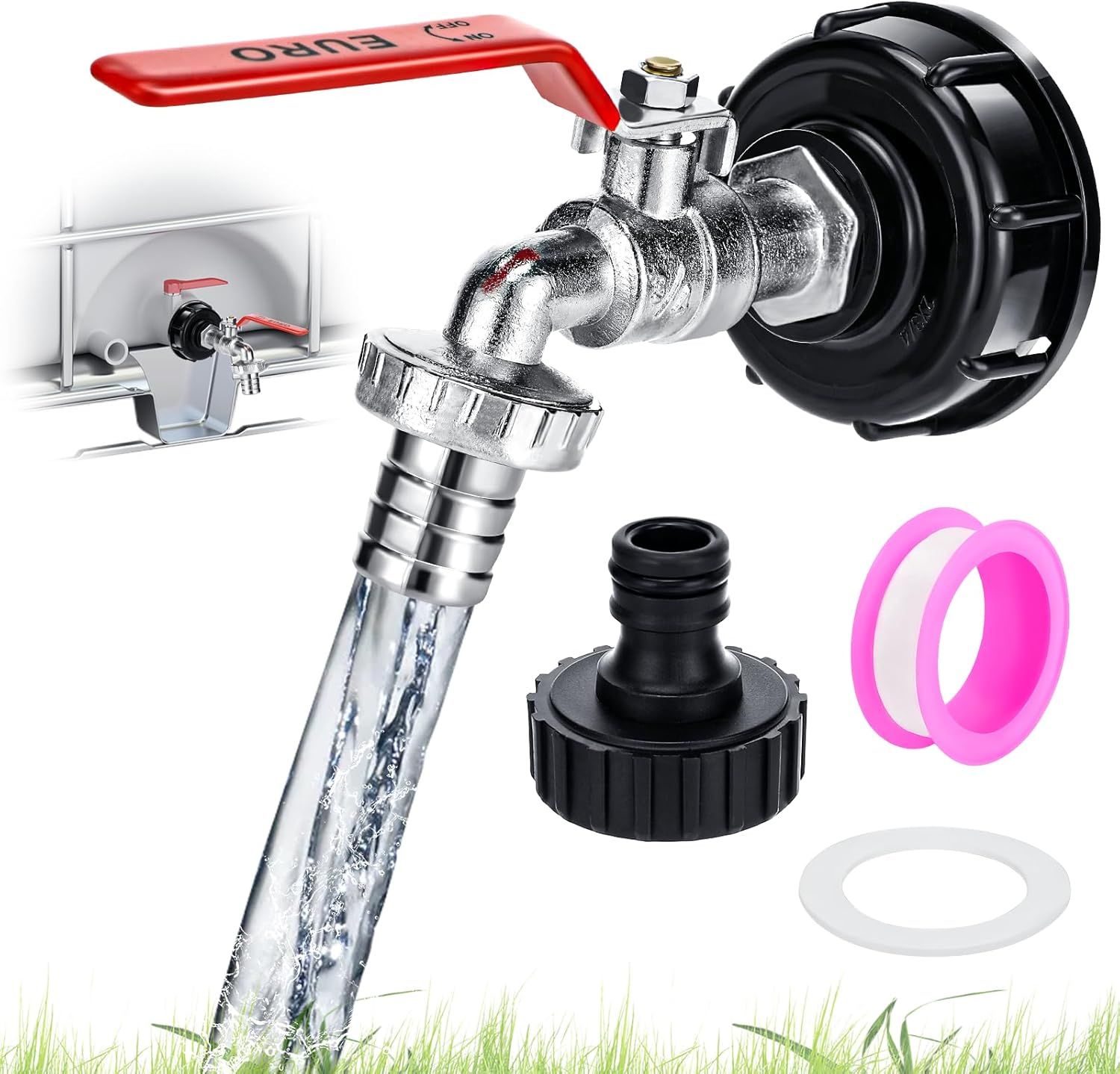 Robinet Cuve 1000L,Raccord Cuve 1000 litres,Robinet IBC Col de Cygne de Cuve,Adaptateur de Réservoir IBC Adaptateur Cuve S60x6,Filetage Grossier 3/4"" Raccord Cuve IBC Robinet Kit