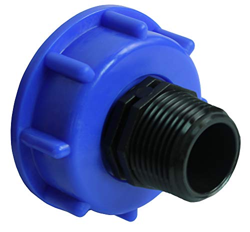 GASMIS Raccord S60x6 Avec Embout Mamelon Mâle/Mâle 1" 33,25 mm, pour Cuve IBC Récupération d'Eau de Pluie 1000 Litres, Bleu, 1 Pièce