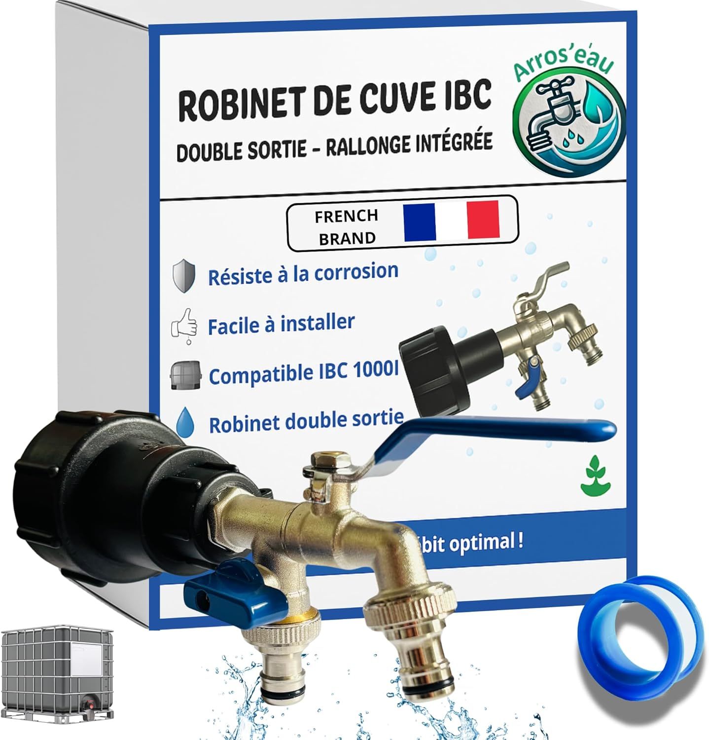 Robinet Cuve 1000L 1/2 S60X6 IBC- Extension Intégrée,raccord cuve 1000 litres,conçu et spécialement adapté à l'utilisation des cuve IBC en France,Bouchon cuve 1000l,raccord cuve 1000 litres,