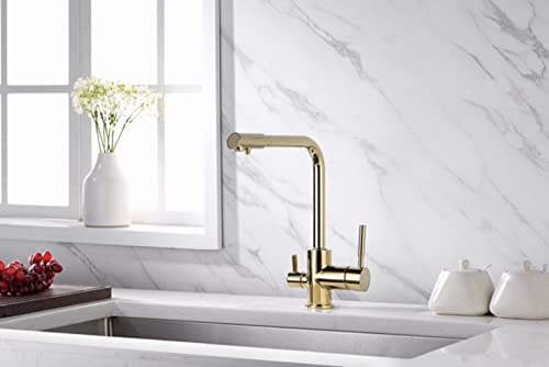 GICASA Robinet de cuisine en cuivre, poignée unique, robinet d'évier de cuisine pivotant à 360°, robinet de cuisine doré avec poignée en laiton massif