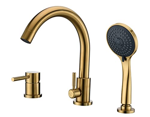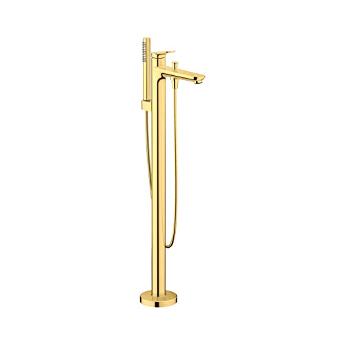 Robinet de baignoire à montage au sol doré : robinet de baignoire autonome avec tête de pulvérisation à main - Ensemble de robinet de douche doré à bec cascade pivotant à 360 degrés - Beelee