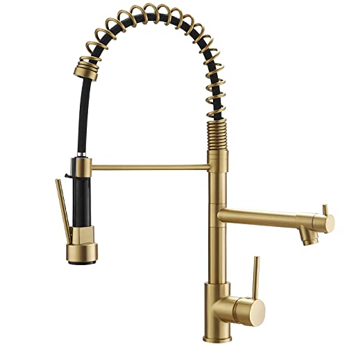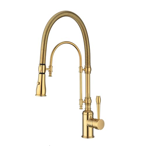 Delta Theodora Pro 18804Z-CZ-DST Robinet de cuisine professionnel avec pulvérisateur extractible, robinet de cuisine commercial doré, robinet de cuisine à ressort, robinet d'évier de cuisine Delta