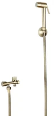 Kit hygiène WC avec douchette 2 jets + flexible + support mural + robinet alimentation, doré brossé, MTK Harmonie