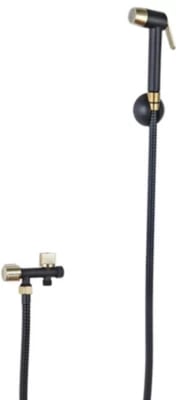 Kit hygiène WC avec douchette 2 jets + flexible + support mural + robinet alimentation, noir/doré brossé, MTK Harmonie
