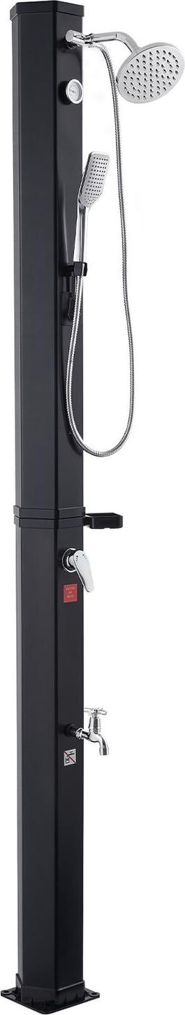 Sined Douche Solaire Noire en Aluminium avec Reservoir de 40L Hauteur 224 cm melangeur et Robinet lavapieds Douche exterieure ecologique Modele Ella