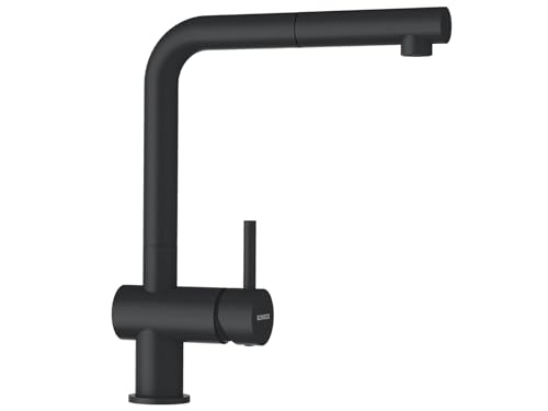 Schütte 79180 STILO douchette extractible, Robinet pivotant à 360 degrés, mitigeur monocommande pour évier de Cuisine Chromé/Noir