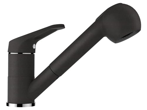 EISL GRANIT NI183SMCR Robinet d'évier avec douchette à 90° orientable Idéal pour double évier, robinet de cuisine, mitigeur monocommande avec douchette, noir
