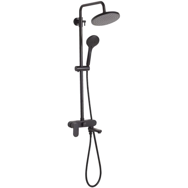 Colonne de Douche avec Pomme Haute Effet Pluie Douchette et Robinet Mitigeur en Laiton Noir Mat pour Salle de Bain Moderne et Minimaliste Beliani