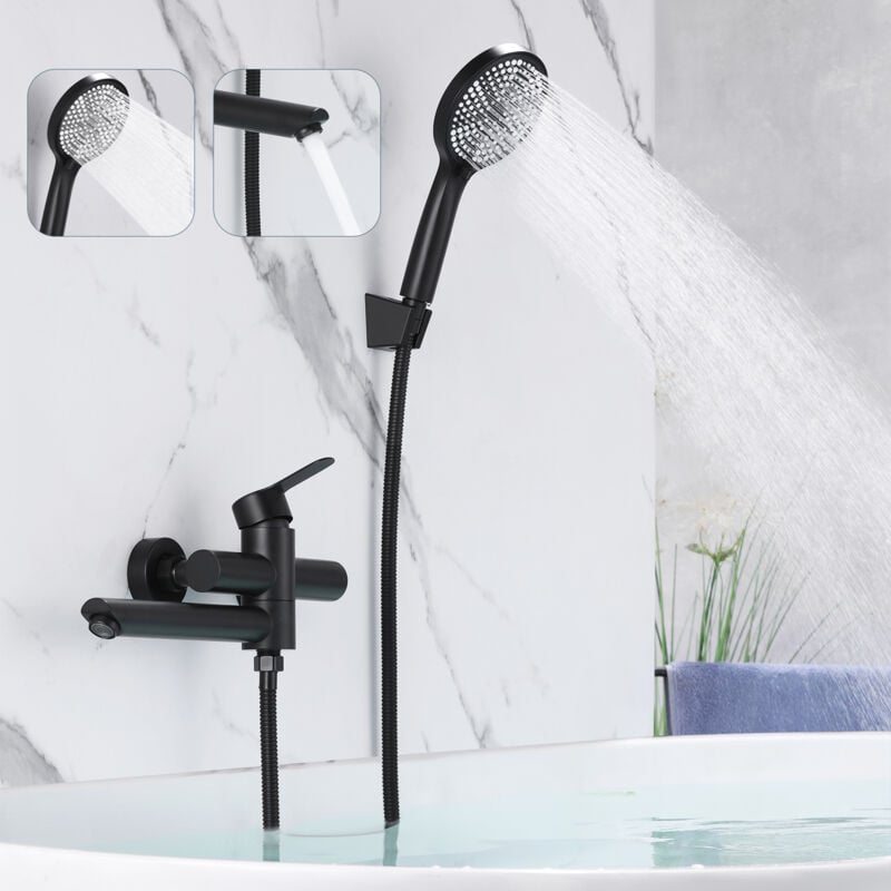 Gbly - Robinet de baignoire Robinet noir - Robinet de douche avec douche Robinet de douche avec douchette Robinet de salle de bain en acier