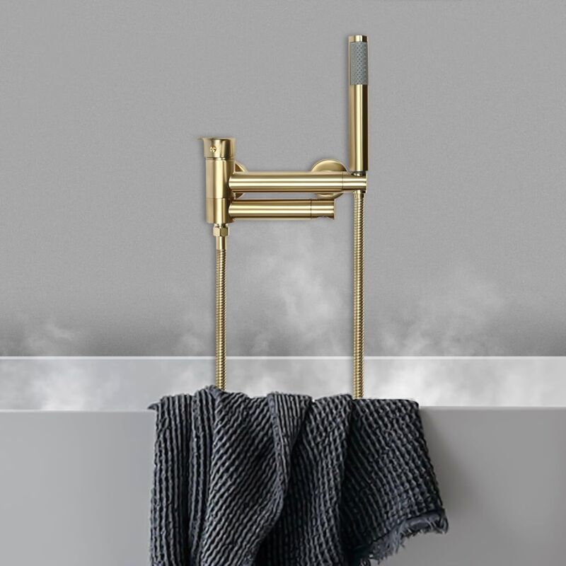 Robinet de baignoire mural doré - Robinet de baignoire monté en laiton avec douchette à main - Bec de baignoire pivotant - Robinet de salle de bain