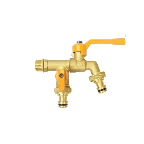 Tyenaza Robinet d'eau à Double Robinet, entrée 1/2 po, Sortie 3/4 po, 1 entrée 2 Sorties, Robinet d'eau extérieur en Laiton, séparateur de Tuyau