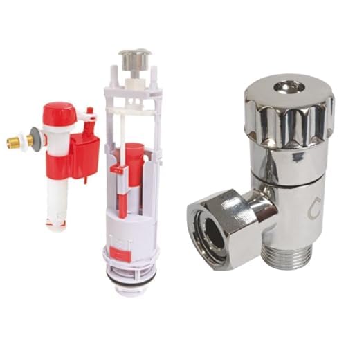 Bundle SOMATHERM FOR YOU - Chasse d'eau complète avec câble double chasse et robinet flotteur réversible, plus robinet d'arrêt droit anticalcaire, design moderne, facile à installer, garantie 10 ans