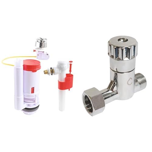 Wirquin 10723580 Mécanisme chasse d'eau wc double chasse avec bouton poussoir à câble MW2, gris & 10723588 Chasse d'eau wc robinet flotteur à alimentation basse Jollyfill, gris