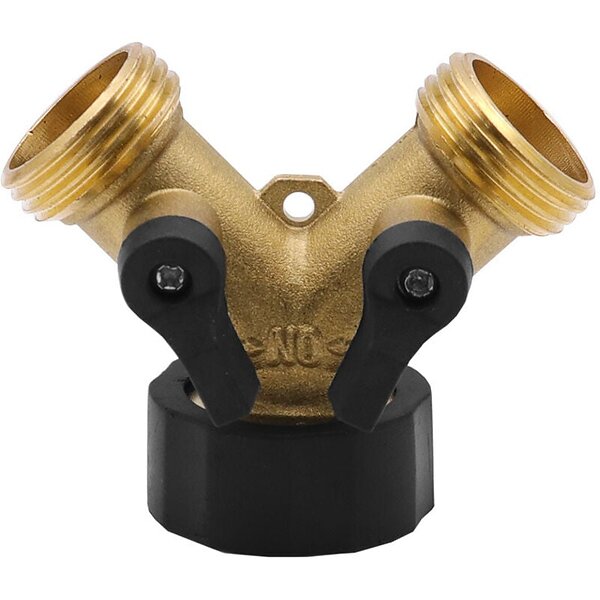 Répartiteur de robinet de jardin en laiton massif – Kit de connecteur de tuyau d'arrosage double voie 1,9 cm, séparateur rapide individuel, marche/arrêt | Valve Y anti-fuite raccord standard