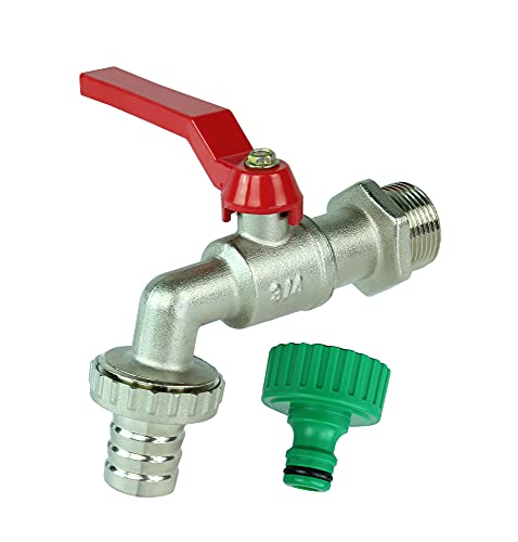 iBamso Répartiteur de Robinet de Jardin en Laiton, répartiteur de Tuyau 1/2" et 3/4", connecteur de Tuyau de Robinet à 2 Voies avec vannes et poignée étendue pour Le Jardin Domestique