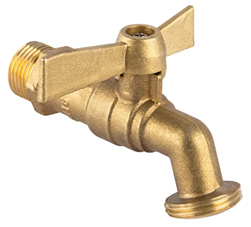 HYTROVE Robinet de Jardin Laiton Pur à Double Sortie Pouce avec Installation Murale pour Usage Extérieur et Intérieur pour et à Mops
