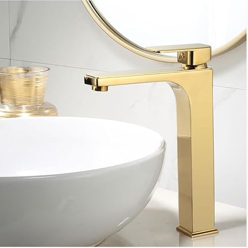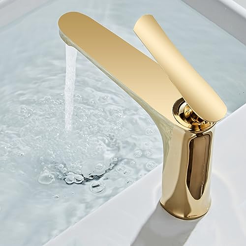 CMBSSTFC Robinet de Salle de Bain monotrou doré en Laiton à poignée Unique, Robinet de lavabo de Salle de Bain, Robinet de lavabo mélangeur Chaud Froid (Couleur : Or)