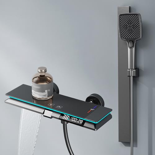 Générique Robinet Mitigeur Thermostatique Cascade pour Bain Et Douche Gris Anthracite Encastré Mural