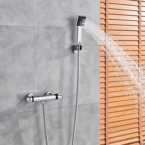 CMBSSTFC Système de Douche Robinet mitigeur de Douche thermostatique chromé à Double poignée, mitigeur de Douche à température constante, Ensemble de Douche de Bain à Main avec Support, Robinet