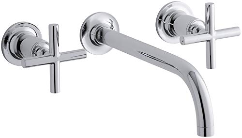 Kohler Purist Robinet de toilette mural à deux poignées avec bec de 90 degrés et poignées transversales, valve non incluse, chrome poli, taille unique