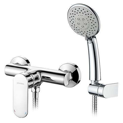 GRIFEMA BERLIN-G12004 Robinet de Douche Mural/Mitigeur Monocommande pour Douche avec Flexible, Douchette 5 Jets, Support, Chromé