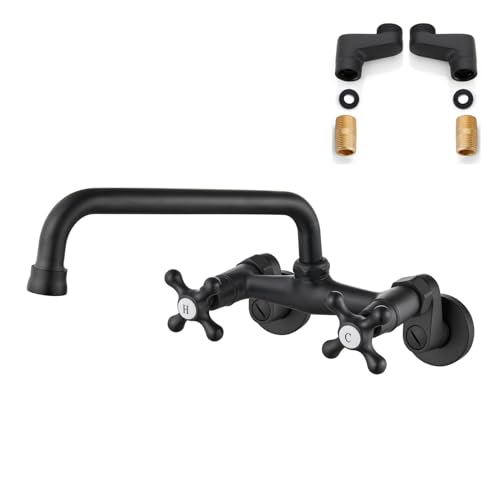 Airuida Robinet de cuisine mural noir mat de 22,9 cm, bec de 7,6 cm à 22,9 cm, mitigeur d'eau chaude et froide, centre réglable, poignées à double croix, robinet rotatif à 360°