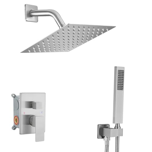 Heable Système de douche en nickel brossé avec pommeau de douche à effet pluie de 20,3 cm, pommeau de douche à main, ensemble combiné de douche de luxe pour salle de bain, robinet de douche mural et
