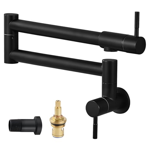 Cinwiny Robinet de remplissage mural noir mat pour évier de cuisine restaurant robinet commercial extensible avec bras oscillant pliable à double articulation à trou unique deux poignées NPT en acier