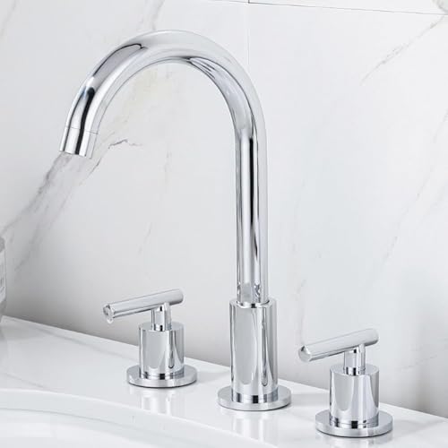 LLSHQ Robinets de salle de bain pour évier 3 trous, robinet de lavabo de salle de bain en laiton, robinet de salle de bain à 2 poignées, robinet de salle de bain 3 trous, robinet de lavabo de salle de