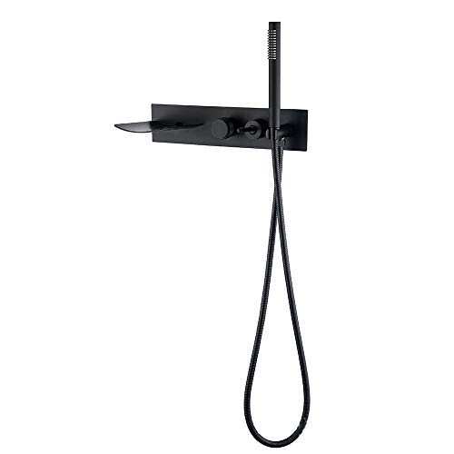 TTDGYYXW Robinet d'évier de lavabo à Brosse, Bec de Cascade Mural en Laiton, Robinet de Salle de Bains à Trou Unique, matériel de robinetterie de Baignoire (Noir Mat)