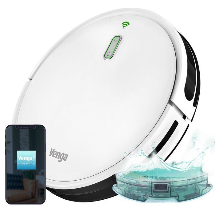 Aspirateur robot laveur sans fil poil d animaux Aspirateur lave de sol 5000mAH/240Min 6000PA application et commande vocale