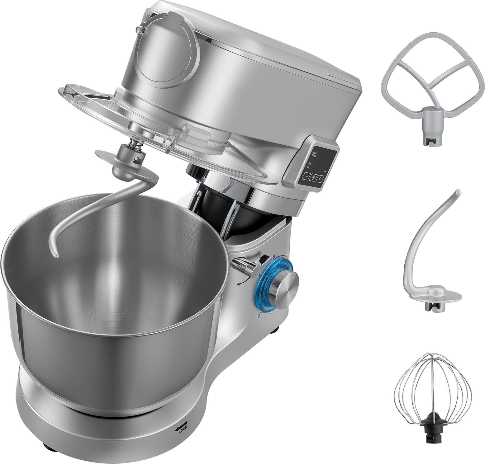 Robot de cuisine VEVOR pour la pâtisserie, robot pâtissier de 1800 W avec cuves en acier inoxydable (7,4 L) & crochets pétrisseurs & fouets & fouets, 10 vitesses réglables batteur inclinable batteur sur socle